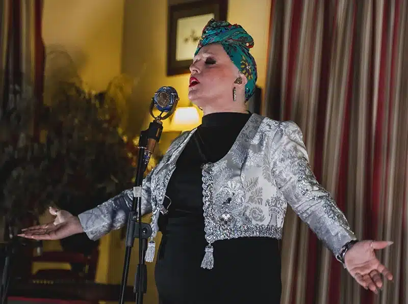 After a break, Farnaz Ohadi returned with two nimble collaborators: santur virtuoso Amir Amiri and guitarist Gaspar Rodríguez. They welcomed the night with a captivating trio show. Ohadi’s presence was powerful, her voice rich, her gestures significant, her whole body working in tandem with her lyrics to convey each song’s message regardless of the crowd’s linguistic comprehension. On either side of her, Amiri and Rodríguez picked up every cue, their strings ringing through the Salón del Molino with equal fire and delicacy.