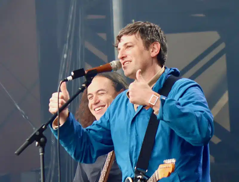 Berman finally addressed the crowd, too, noting the obvious thanks to festival clock watchers. “There isn’t a lot of time to rehearse banter,” he wryly said to applause and laughter. “But I do like that the sun is coming out for this. (Huge cheers) Big fan of the sun. You’ve got Pains in the rains, so that’s OK; thanks guys, thank you.”