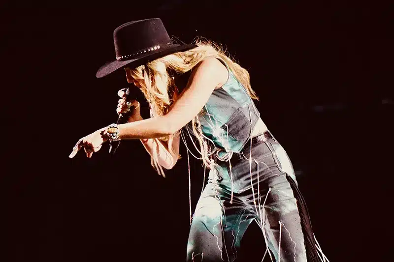 A visually impressive stage setting included video screens depicting scenes and landscapes of the Old West, along with a giant horseshoe that put the Indianapolis Colts’ logo to shame. The long catwalk gave Wilson many opportunities to bond with the audience or turn them on musically. She also did an informal “meet-and-greet” on a stroll across both sides of the floor in the show’s second half, then signed autographs during the last song — “Heart Like a Truck” — before her disappearing act below the stage. With a cheerleader’s fervor, Wilson would provide instant energy boosts by commanding “put your hands together”, “crank it up”, and “take it up a notch”.