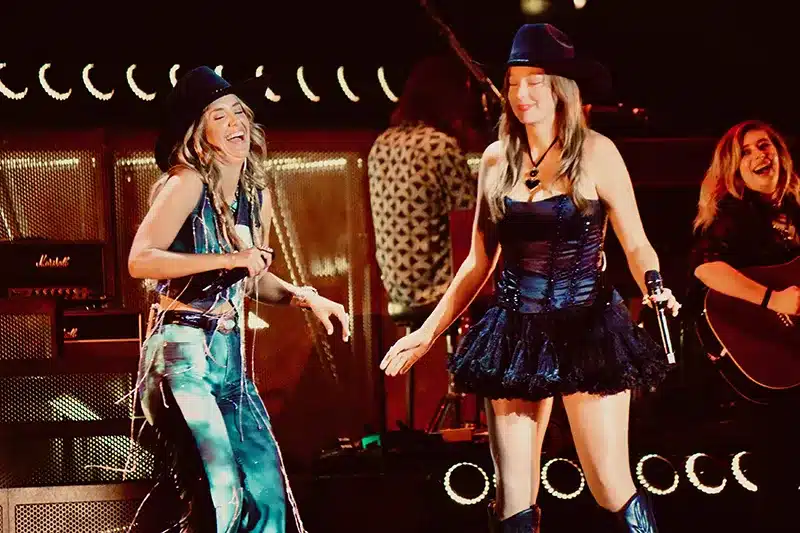 Lainey Wilson brought out opening act Kaitlin Butts (introduced as the “Oklahoma queen”) for the Don Williams cover “Tulsa Time”. The tune, also popularized by Eric Clapton, was a cool highlight until it was interrupted when someone needed medical attention and the band temporarily left the stage. However, the two super troupers soon returned to sing one last verse a cappella, much to the delight of the crowd. Another supporting act, the singer-songwriter simply known as Ernest, later joined Wilson for a seat near the front of the catwalk to play acoustic guitar and sing the ballad “I Would if I Could” as a duet. There’s a story behind that, too.