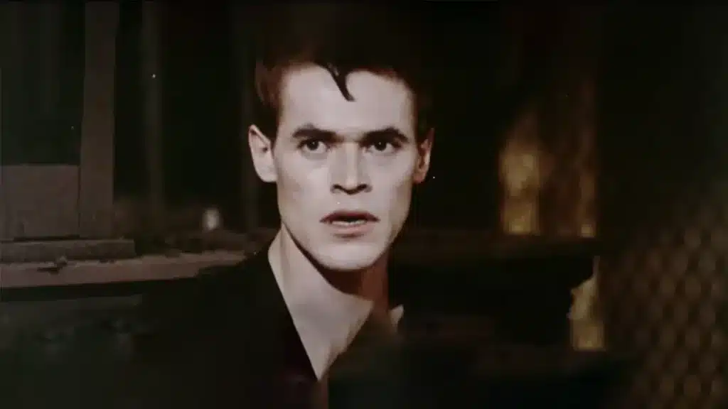 Beneath Streets of Fire‘s stylized surface lies a complex meditation on trauma, belonging, and authentic heroism. The film presents two distinct forms of antagonism: while Shaddock (Willem Dafoe) embodies an overt menace with feral intensity, the more insidious threat comes from Billy Fish, Rick Moranis’s fast-talking, bow-tied manager. Film critic Roger Ebert’s famous description of Fish as “the creep of the class of ’57” captures something essential about this figure whose nouveau riche aspirations and deep inferiority complexes manifest in class snobbery and controlling behavior toward Aim.